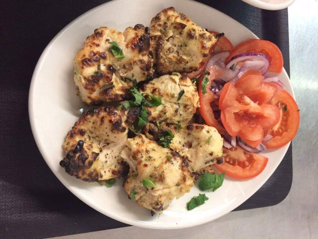 csirkemell falatok különleges fűszereinkben marinálva tandoorban sütve / boneless chicken pieces marinated with our special masalas and grilled in the tandoor